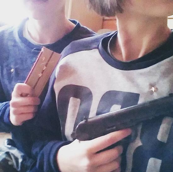 卡佳说他们最后剩下的武器就只有一个钢片了,“这个好像没什么用,不过挺有趣的”。警察曾给他们30分钟的考虑时间,这对情侣在视频中称他们并不想自杀,他们将武器扔出窗外也是为了更好地思考。