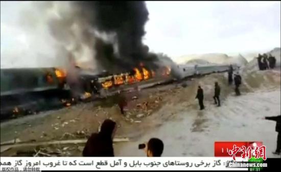 国营电视台播出4节车厢出轨的画面,其中2节着火。伊朗红新月会发言人莫塔札维(Mostafa Mortazavi)表示,消防员正试图控制火势。