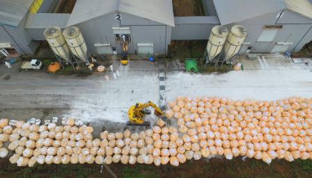 另一方面,日本青森县正在检出H5型高致病性禽流感病毒的青森市北部农场附近持续作业,填埋被扑杀的食用鸭及从饲养设施收集的粪便。设施消毒工作同时展开,力争在1日完成农场内防疫措施。