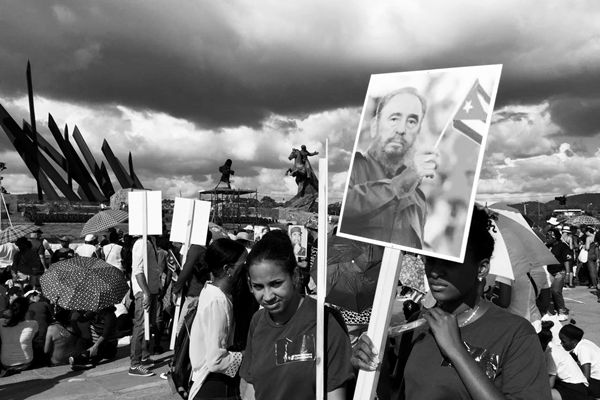 古巴民众3日在圣地亚哥送别老卡。 李强/摄