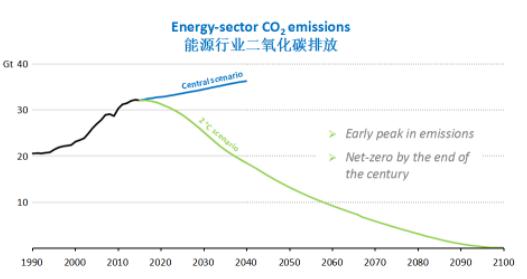 尽管困难重重,报告仍认为《巴黎协定》将会转变未来几十年的全球能源体系发展格局,为低碳发展和能源转型提供了机遇。从各细分领域来看,未来煤炭行业不断走低,油气领域机遇与挑战并存,可再生能源前景则更加广阔。2016年,中东占全球石油产量的份额达近40年来最高,与此同时,随着天然气市场转型不断加深,液化天然气(LNG)扮演起更重要的角色。在发电领域,2015年可再生能源新增装机已经超过了天然气、石油和核能发电的总和,到2040年,以可再生能源为主的低碳燃料和技术将满足将近一半的新增能源需求。