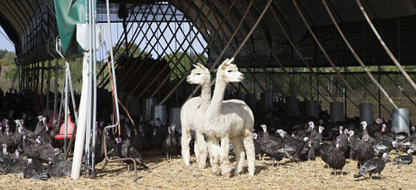 据悉,农场主汤姆·卡帕斯(Tom Copas)已经养鸡58年了。他采用自由放养法,让数万只火鸡在樱桃园和草地上随意活动,因而常会遭到狐狸的迫害。于是,汤姆利用羊驼天生的警觉性来保护火鸡群。
