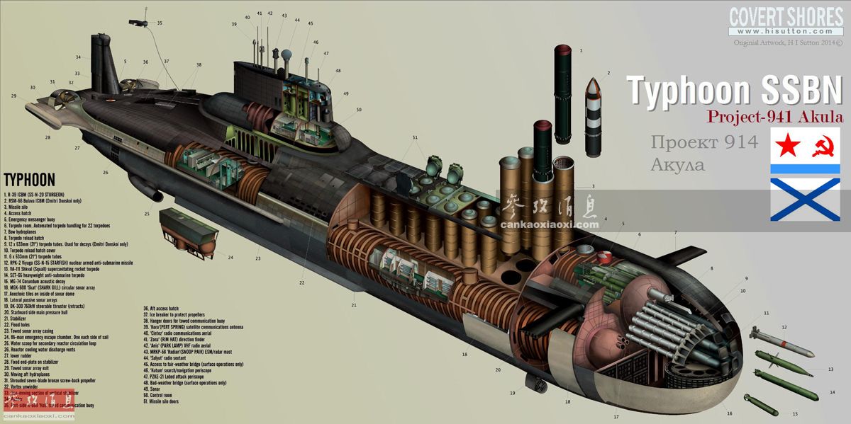 俄罗斯(苏联)海军台风级弹道导弹核潜艇。