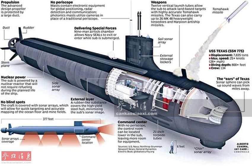 美海军“德克萨斯”号(SSN-775,弗吉尼亚级)攻击型核潜艇。