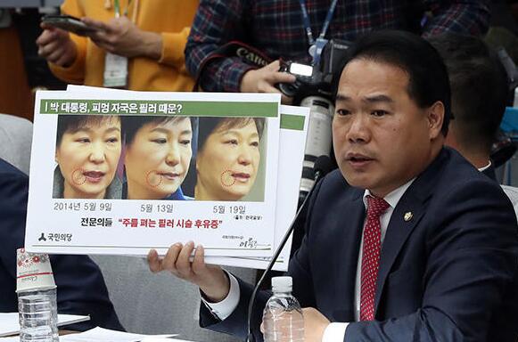 据韩国《中央日报》报道,14日的国会听证会上,最大在野党共同民主党国会议员金汉正出示了一张“岁月”号沉船事故发生后朴槿惠嘴角有清晰淤血痕迹的照片,直接质问“朴槿惠当时是否打了用于微型整容的填充针,淤血痕迹是否为填充手术后的痕迹”。涉嫌为朴槿惠注射填充物的整容医生金英才回答称,应该是注射了类似人体组织的填充物,血管破裂才导致局部淤血,但他否认自己给朴槿惠打过脸部填充针。作为证人出席国会作证的前青瓦台护理军官申宝拉则表示,“岁月”号事故当天,曾向总统官邸转交了漱口水。对此,共同民主党国会议员孙慧媛表示,在接受麻醉进行整形手术后,嘴部会没有知觉,因此一般医生会劝告患者多使用漱口水。曾担任总统咨询医生的金相滿证实,曾亲自给朴槿惠做过两三次胎盘注射。他还承认,当时是在无主治医师的情况下单独为朴槿惠实施了治疗。