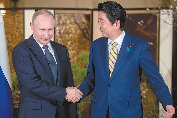 15日,安倍在苦等几小时后,终于在山口迎到普京。