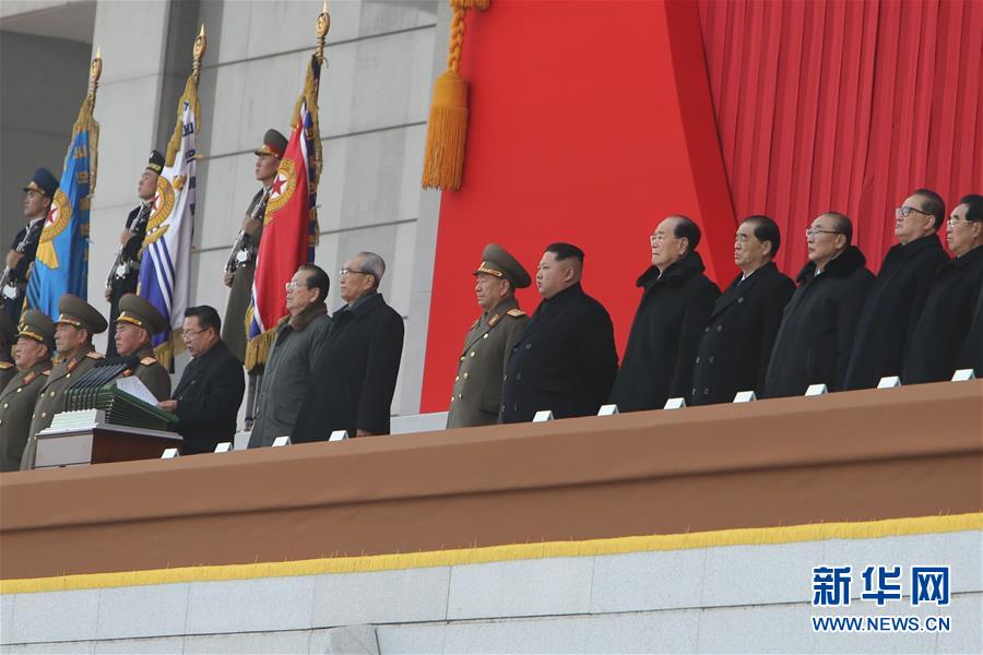 12月17日,在朝鲜平壤,朝鲜最高领导人金正恩(右六)出席中央追悼大会。当日是朝鲜已故最高领导人金正日逝世5周年纪念日,朝鲜在平壤锦绣山太阳宫举行中央追悼大会深切悼念。新华社记者郭一娜摄