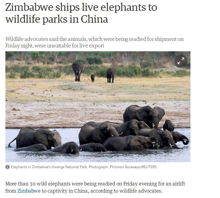 在《卫报》今年3月份的报道中,三家美国动物园从非洲斯威士兰购买了18头非洲大象。美方的购买行动旨在“解救”因干旱食物短缺而面临生存危机的非洲野生动物。“迅速转移这些动物可以为其提供一个安全的家园”。