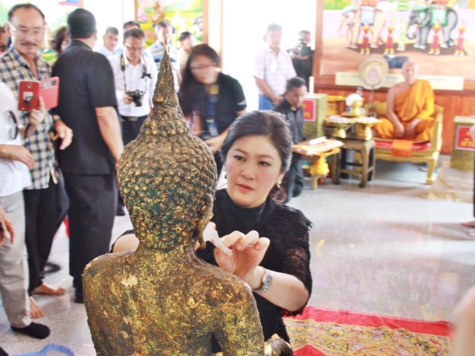 泰国前总理英拉为名寺佛像贴金 民众热情赠送新年礼