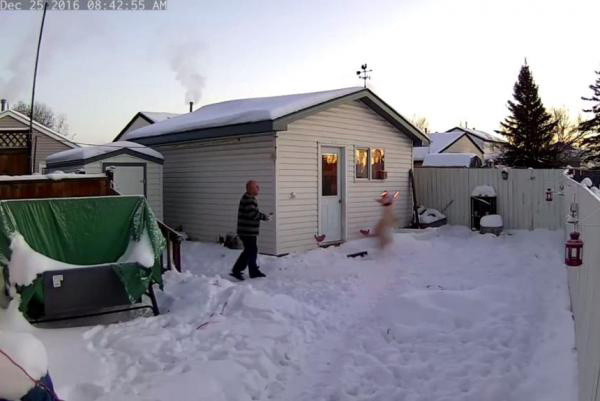 名为mig399的用户在YouTube上发布了相关视频。画面显示,在圣诞节当天,这名男子正准备放飞一架散发着粉色光芒的无人机,但就在无人机刚飞离地面还不到一米的时候,他家的宠物狗就从屋子里飞奔出来,跳到空中,用嘴把无人机叼住,然后将它拖回了地面。