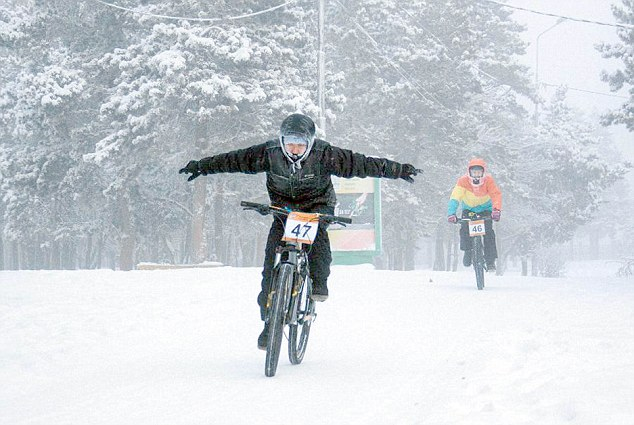 据英国《每日邮报》12月28日报道,近日,俄罗斯雅库茨克市(Yakutsk)举行了一场超酷的自行车比赛,本次赛事在零下40度的极寒条件下进行。虽然天寒地冻,但是还是吸引了不少车友,被称为“史上最酷”的自行车比赛。