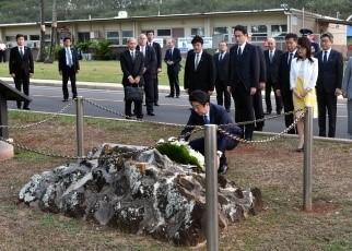 翌日,安倍在珍珠港演讲时,特意当着奥巴马总统和美国老兵的面强调,他昨天在海军基地参拜了一位日本帝国海军士官的“碑”。此人正是攻击珍珠港时中弹无法返回航母而战死的飞行员饭田房太。过去,还有一些日本神风特攻队成员曾打着日本军旗,集体前往参拜献花。这次安倍亲自前往参拜献花则是作为日本首相对二战战犯的一次“慰灵”。