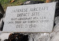 饭田房太石碑其实是1971年美国人安放在其墓地的一块石头说明,以示和其他美军士兵墓地的区别。石块上只刻有“日本军机撞击坠毁点,飞行员饭田大尉、第三制空队指挥官,1941年12月7日”。