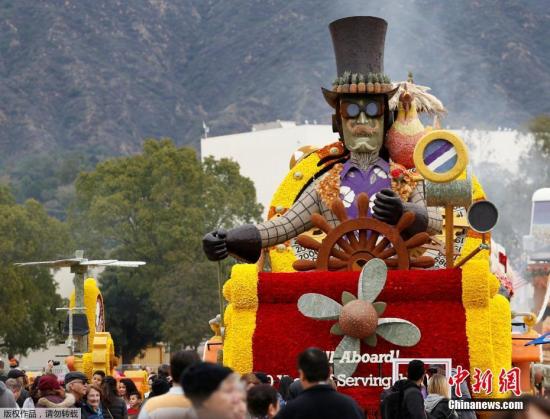 中新网1月5日电 据外媒报道,美国加州的帕萨迪纳市1日迎来第128届玫瑰花车大游行(Rose Parade),这一年度盛事可谓百“花”争奇斗艳,各色花车造型别出心裁,向全世界呈现一次美的飨宴。