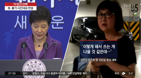 【环球网报道 实习记者 丁洁芸】去年10月,韩国JTBC电视台曾报道崔顺实在总统演讲前修改过演讲稿。近日,韩媒“TV朝鲜”又爆料称,朴槿惠2013年在中国清华大学的演讲,也是经崔顺实修改过的。