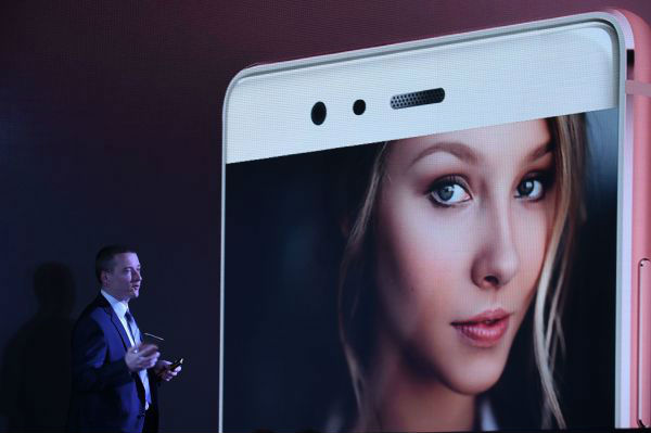 资料图片:2016年6月7日,华为面向俄罗斯发布智能手机P9。(新华社)