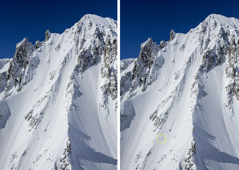 乍眼望去,这组图片中只有白雪皑皑的山峰,但是仔细观察,你会发现一个“胆大妄为”的人正从海拔3855米高的雪山上向下滑。28岁的法国滑雪爱好者员山姆(Sam Favret)在霞慕尼大若拉斯山近乎垂直的山峰上优雅地滑下,他的身影几乎被雪淹没。