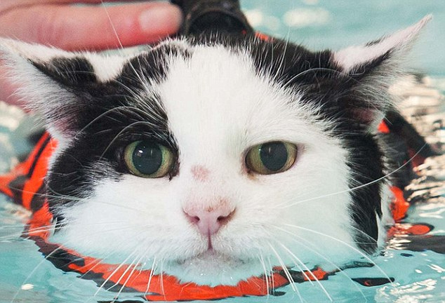 据英国《每日邮报》1月16日报道,一只名叫查理(Charlie)的11岁英国短毛猫由于过度肥胖,体重增至原来的两倍,目前已通过游泳成功减掉4磅(约1.8公斤)。