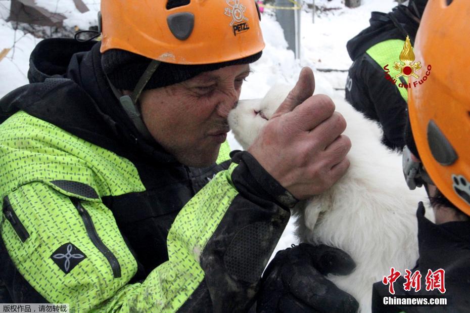 当地时间1月23日,意大利救援人员在被雪掩埋的酒店附近找到三只被埋的狗宝宝。三个呆萌小家伙的获救让工作人员喜出望外,热情地对它们又抱又亲。意大利中部的一处滑雪度假酒店当地时间1月18日遭到雪崩掩埋,造成宾馆内超30人失踪。