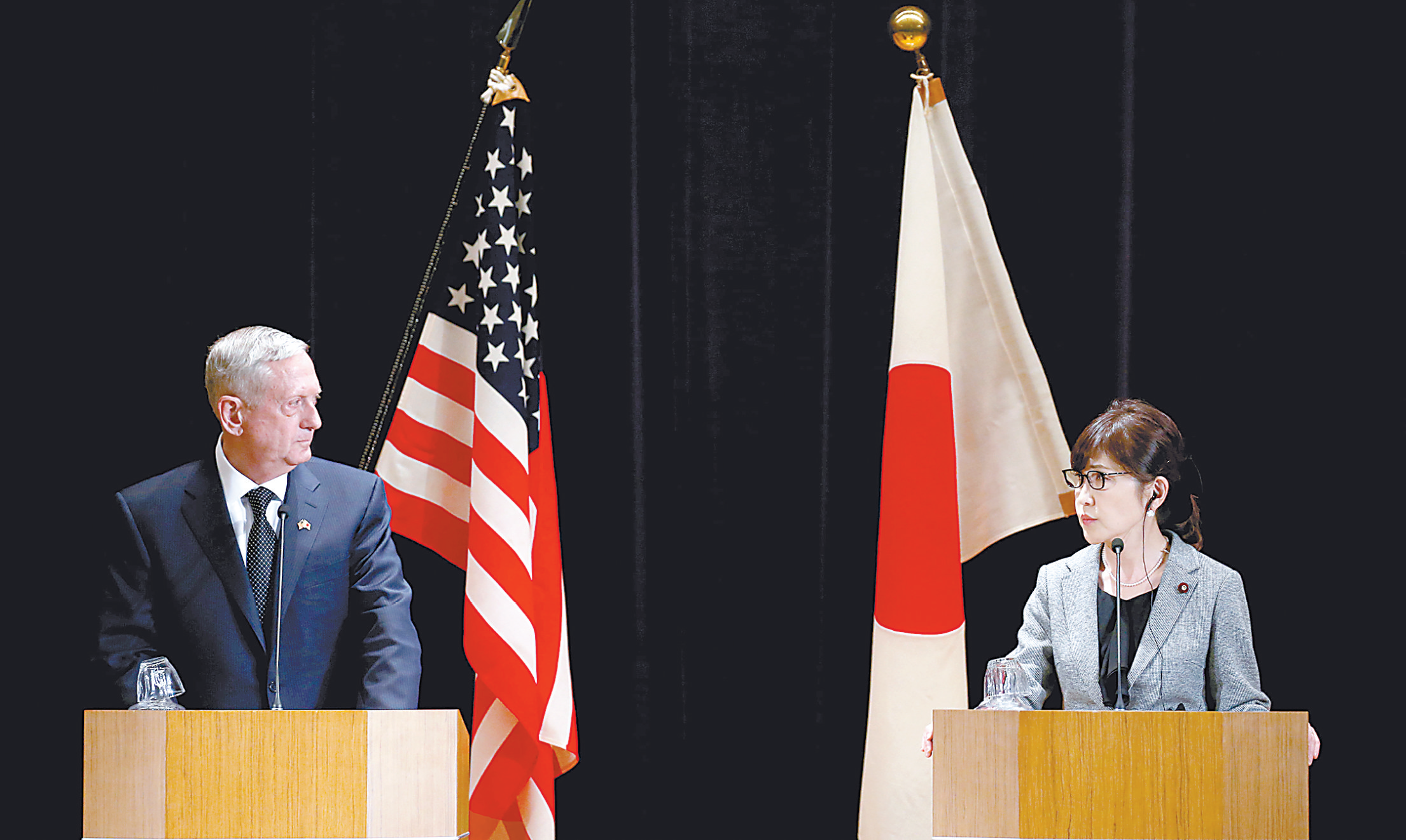 【环球时报综合报道】美国防长马蒂斯4日离开东京,结束了对日本和韩国的安抚之旅。日本《每日新闻》5日评论说,这次访问让日本方面确认了美国政策的连续性,这可以看成是访问成果加以强调。然而,日本媒体在高兴之余,仍然难掩失落:钓鱼岛问题上,日本想让美国承认所有权的目的没有达到;南海问题上,马蒂斯“目前无意出兵南海”的表态,与积极呼吁美国关注南海局势的日本防卫大臣稻田朋美差异明显。