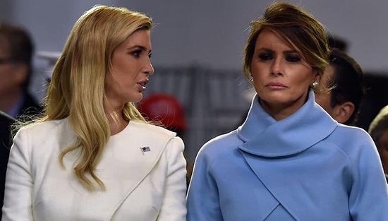 1月20日,特朗普女儿伊万卡(左)和第一夫人梅拉尼亚(右)在总统就职典礼上。