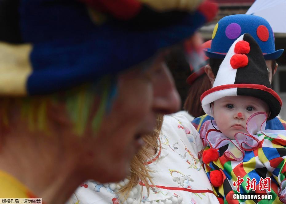 英国伦敦小丑欢聚一堂 纪念“小丑之父”(组图)