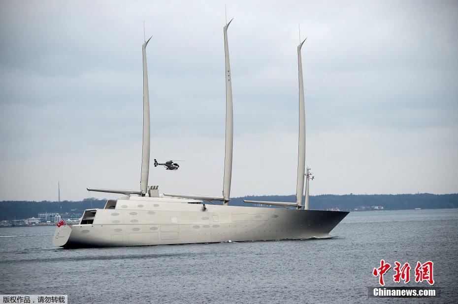 当地时间2017年2月6日,丹麦Elsinore,世界上最大的超级帆船游艇Sailing Yacht A经过丹麦,将前往挪威。据了解,俄罗斯大亨安德烈?梅尔尼琴科(Andrey Igorevich Melnichenko)斥资2.6亿英镑(约合人民币25.67亿元)在德国建造了一艘豪华游艇,这是目前世界上最大的一艘帆船游艇。Sailing Yacht A 长约 143 米,高约 91 米,以游艇的角度来说绝对是当之无愧的巨物了。除了尺寸,它在设计上也有许多看点。Sailing Yacht A 的桅杆以碳纤维所制,因此成为了世界上最高且强度最大的复合式独立结构之一。新游艇采用柴电发动机驱动,最高速度可达 20 节,巡航速度也能达到 15.6 节。它总共分为八层,可以容纳 20 位客人和 54 位船员,甚至还有 3 个游泳池以及一个直升机停机坪。