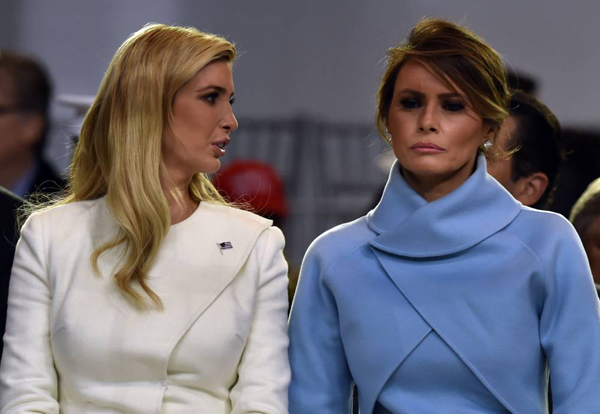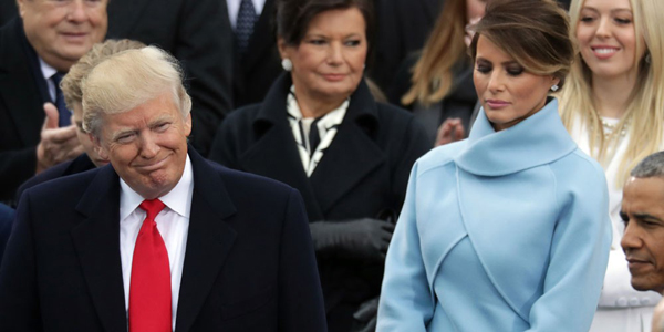 特朗普就职典礼上,梅拉尼娅(右)略显悲伤的表情曾被网友热议。