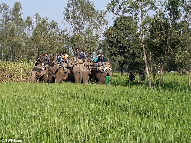 当地组成一个搜索队,前方的村民配备棍棒和斧头,驾驶着拖拉机在甘蔗地里“劈波斩浪”,为身后骑着大象的森林护林员开路。