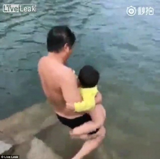 父亲将儿子扔进湖里 孩子拼命挣扎