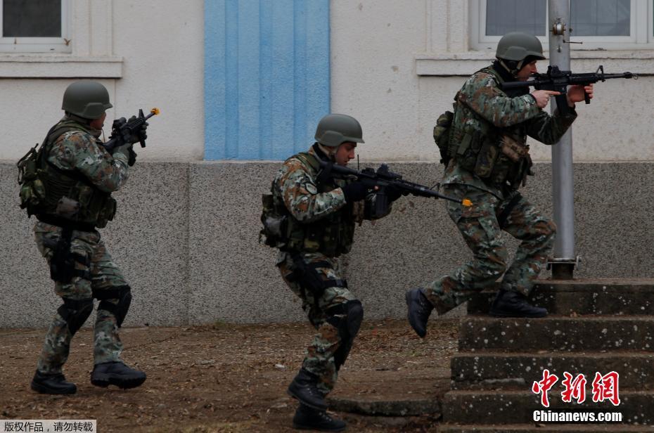 近日,马其顿陆军和警察特种部队士兵在与美国海军海豹突击队进行3个星期的训练后在斯科普里进行演习,展示他们的训练成果。