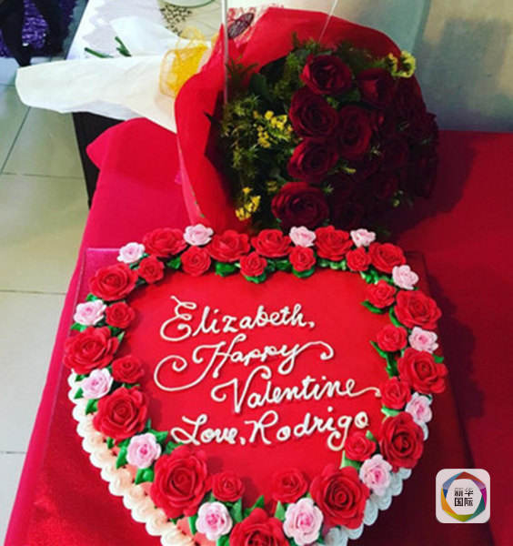 因此,在去年情人节期间,杜特尔特特别“示爱”伊丽莎白,向她送去了一束玫瑰花和一份心形蛋糕,并在红白玫瑰装饰的蛋糕上写道:“伊丽莎白,情人节快乐,爱你的罗德里戈。”