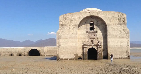 这座百年教堂始建于16世纪,是当时去墨西哥传教的一群僧侣们修建的。1966年,这座教堂被洪水淹没,从此失去踪迹。由于干旱导致湖水水位下降,这座教堂得以重新出现在人们的视野中,而且保存得很完好。