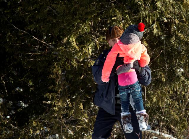 难民儿童被加拿大骑警抱过边境 美国警察“懵了”