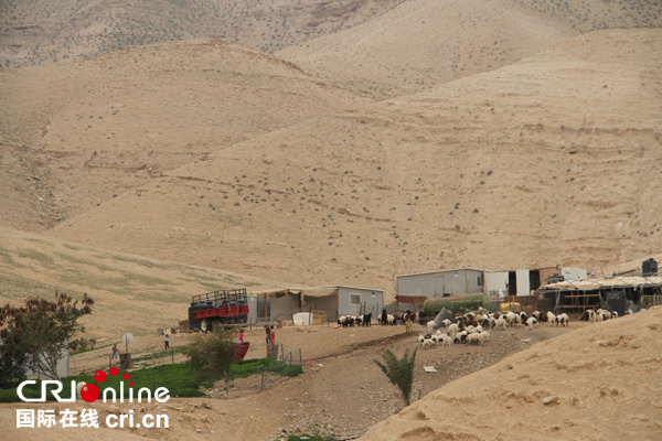 国际在线报道(中国国际广播电台记者 孙伶俐):从耶路撒冷到死海的公路两边几乎都是荒漠,海拔逐渐降低,到了海拔为零的地方,公路边有一个海平面路标,有贝都因人牵着骆驼在这里供游客拍照。而就在这旁边的山坡上散落着一些极其简陋的方形帐篷,有的是传统的油毡布,也有的是铁皮屋,但帐篷里面还是挺干净的,有的地面上还铺了鲜艳的地毯。这里住着巴以地区的游牧民族——贝都因人。