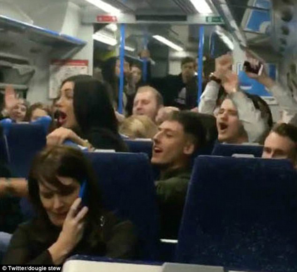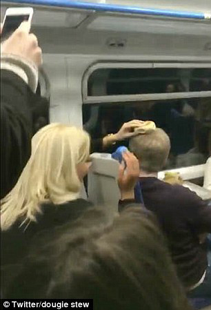 【环球网综合报道】据英国《每日邮报》2月27日报道,英国列车上两名女子恶作剧,把百吉饼放在前排一名男乘客头上,后不知为何,两人开始大打出手。列车上的其他乘客将两人拉开,结束了这场闹剧。