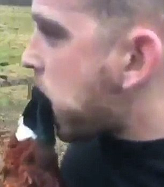 【环球网综合报道】据英国《每日邮报》2月28日报道,近日,一则视频在网络上疯传。视频中,一名黑衣男子嘴里含着一只野鸡的头,左手还拿着一瓶巴克法斯特酒,一脸轻松自如的表情。