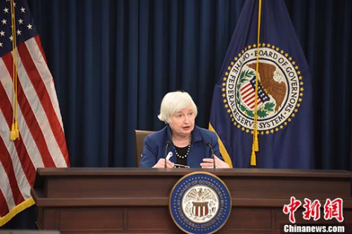 当地时间3月15日,美联储主席耶伦在华盛顿宣布,将联邦基金利率上调25个基点。 中新社记者 邓敏 摄