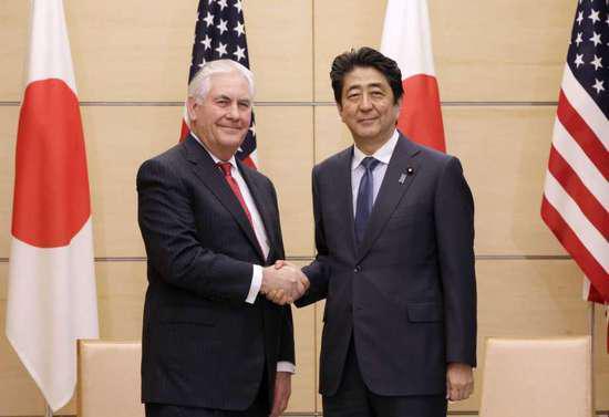 原标题:美国务卿蒂勒森会见安倍晋三 强调朝鲜威胁