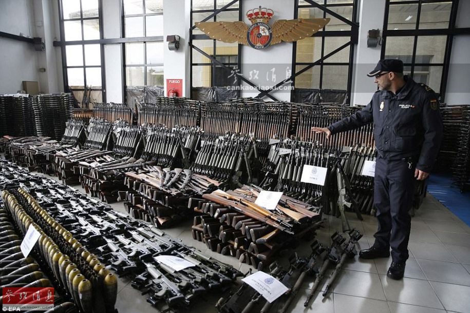 据《英国每日邮报》网站报道,西班牙警方近日公布了一组堪称是欧洲最大地下军火库的照片,据警方透露,这些军火都是从一个有组织犯罪团伙查获的,这些武器包括超过1万把突击步枪、机枪、转轮手枪、自动手枪,以及400多颗手榴弹以及迫击炮弹。