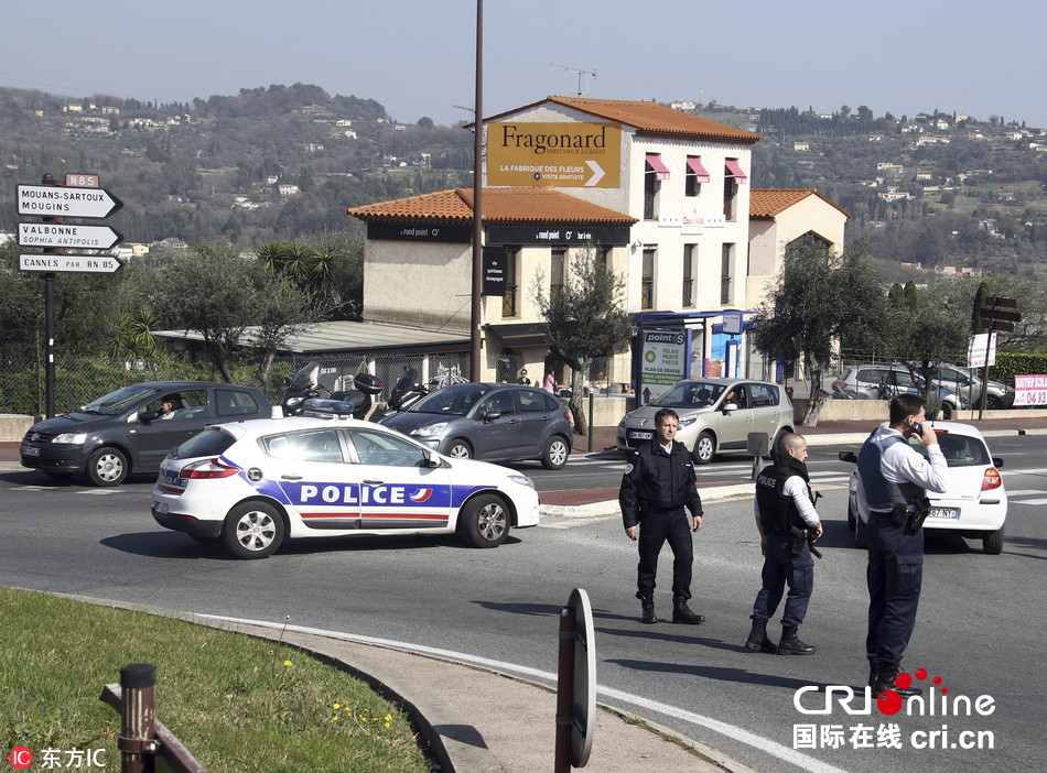 当地时间2017年3月16日,法国南部小镇格拉斯的一所高中发生枪击事件。图片来源:东方IC