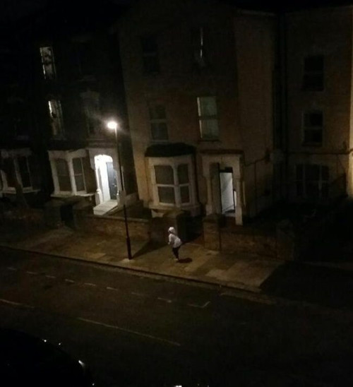 邻居于周六晚间拍摄的照片。孩子遇害的母亲在街上大声呼救。