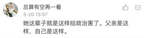 “她这辈子就是这样给政治害了,父亲是这样,自己是这样。”在微博上谈论这位“悲情女总统”时,有网友唏嘘地说。