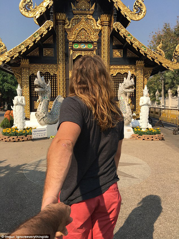 其中一名男子说,周围的朋友都结了婚,有了自己的小宝宝,而他仍然单身,所以他决定和自己的单身好基友来一次“蜜月旅行”,庆祝两人的单身生活。在照片中可以看到,一名留着金色长发的男子背对着镜头向前走,左手则紧紧拉着“爱人”的手,一副“情深意切”的模样。从寺庙、夜市到大象保护区,两人一起欣赏沿途的美丽风景,谱写“爱”的篇章。