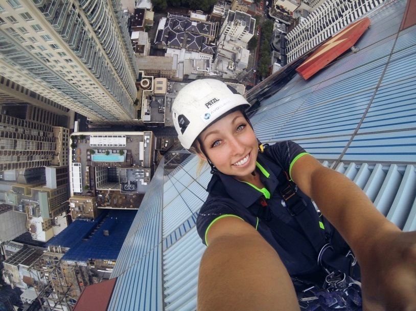 爱工作爱自拍:悬挂在摩天大楼上的工人们