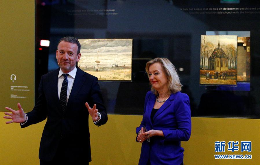 3月21日,在荷兰阿姆斯特丹,荷兰教育、文化和科学大臣耶特·比塞马克(右)与梵高博物馆馆长阿克塞尔·吕格尔出席仪式。两幅失窃的梵高画作21日在荷兰首都阿姆斯特丹的梵高博物馆展出,博物馆举行仪式,欢迎画作“回家”。这两幅画作分别为《斯海弗宁恩的海景》和《离开尼厄嫩教堂》,于2002年12月在梵高博物馆内被盗走。2016年9月,意大利警方在意大利斯塔比亚海堡市的一间住宅内发现了这两幅画。新华社/路透