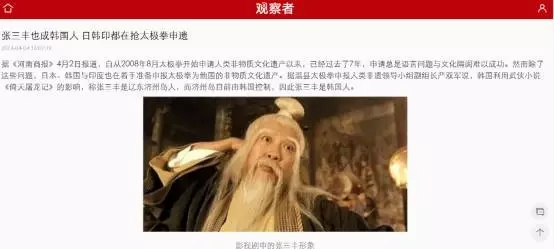 23日“中韩大战”前,另一则有关中韩的“战争”也上了微博热搜——韩媒称张三丰是济州岛人。
