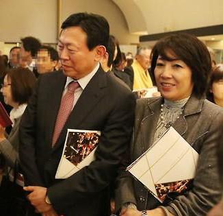 图为辛东彬携日本籍夫人重光真奈美一起出席活动