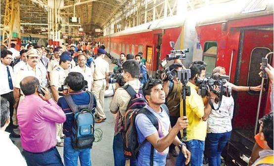 25日上午,印度记者在孟买火车站围堵盖克瓦德