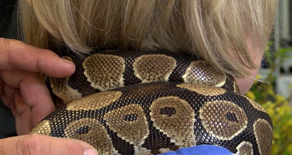 这条蟒蛇名叫蒙蒂,身长约1.22米,它每周“工作”两天,为顾客提供专业的按摩服务。只见它先缠绕在顾客的脖子上,通过收缩或放松肌肉来为客人按摩。一名顾客表示,尽管按摩时非常紧张,但蒙蒂的按摩方式独到有力,因此她还会再次光临。